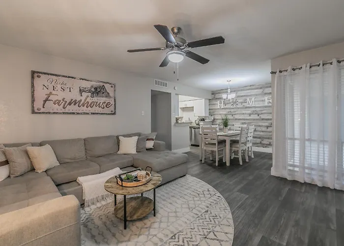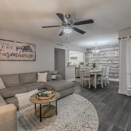 Welcome to the Cozy 2Br Farmhouse Apt, a delightful escape nestled in the heart of Arlington, Texas. This stylish apartment, designed to accommodate up to eight guests, is ideal for families and groups seeking both comfort and convenience. Located just 25 km from the bustling Dallas-Fort Worth International Airport, it offers easy access to the region's top attractions, making it a perfect home base for your adventures.